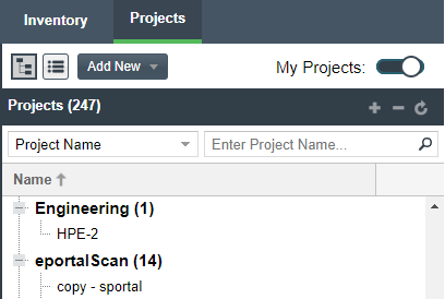 • Alternatively, open the project to view its inventory on the Project Inventory tab. See Opening a Project for details.